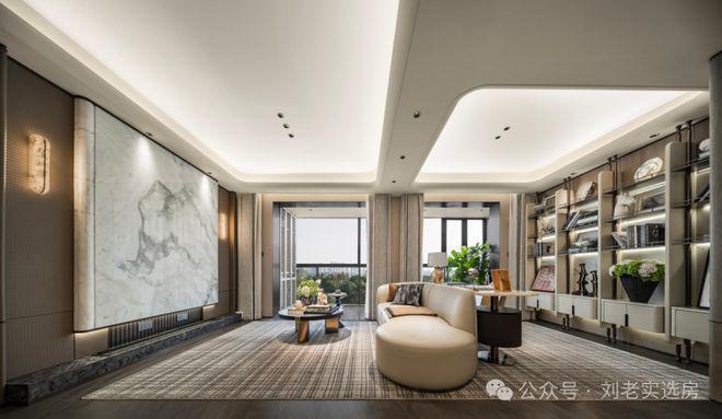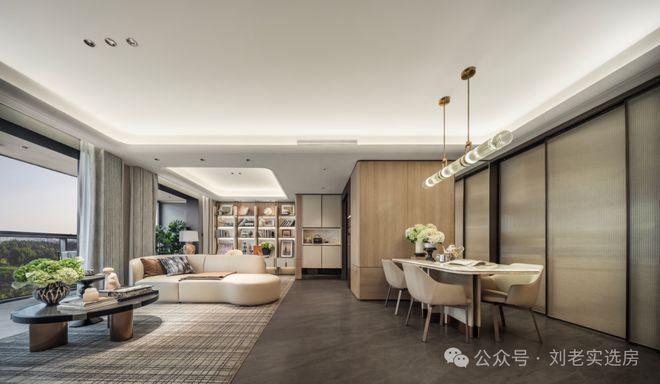 吊顶和墙面采用大量弧线造型取代冰冷的直角,江湾金茂府售楼处电话☎:【预约☎】不仅以柔和的轮廓减少了磕碰隐患,更给空间注入了优雅与流动的气息