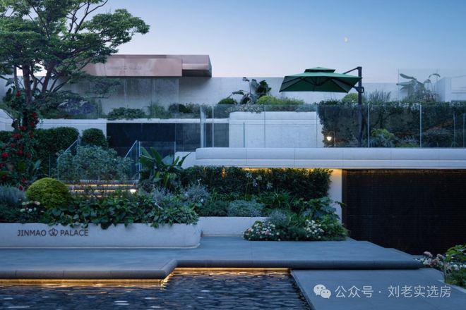 蓝翡翠水景围着下沉庭院,中间有蜿蜒的挑台连着瀑布,顶层还有供业主小聚的女王花厅,实现了美感与功能的完美融合