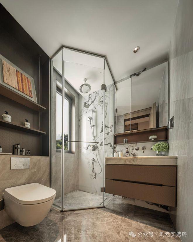 杜拉维特的台盆、壁挂智能马桶,高仪的龙头、淋浴花洒在江湾金茂府卫生间聚首,同级别新盘极少有这样的配置