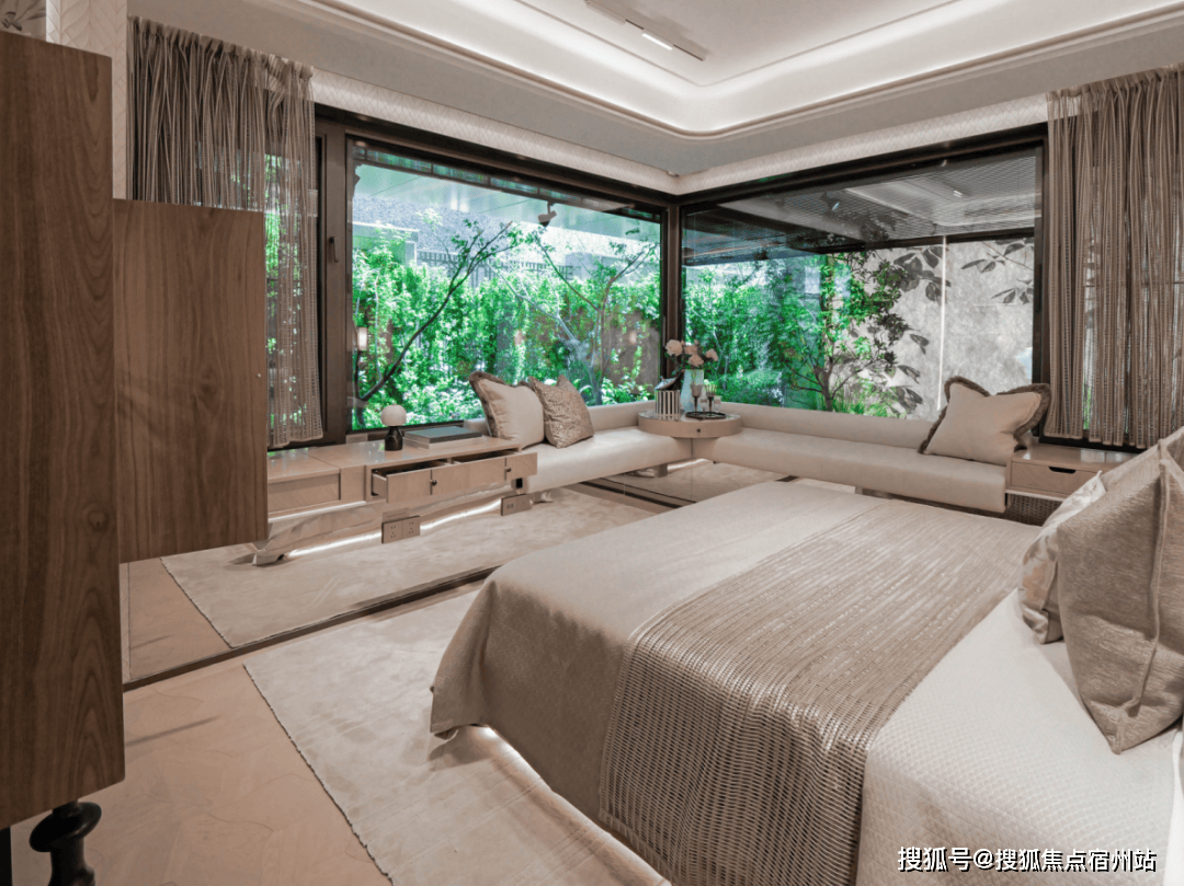就拿主卧这个转角飘窗来说,实际的面积来到了4㎡以上,(根据实地测量计算,进仅供参考,以开发商实际交付为准,下同),整个套房主卧,卧室+卫生间+飘窗,形成了一个豪华大套间,堪比一般高层的客餐厅!