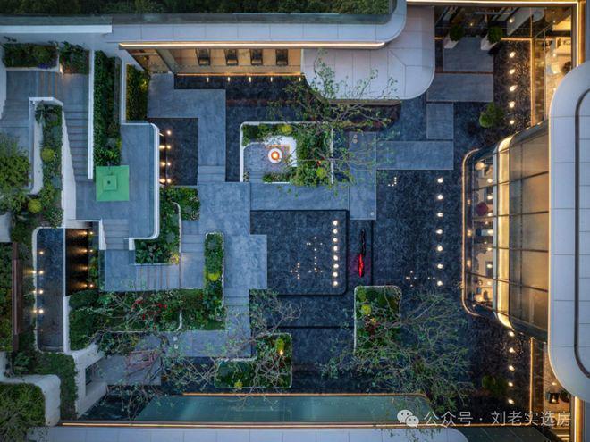 蓝翡翠水景围着下沉庭院,中间有蜿蜒的挑台连着瀑布,顶层还有供业主小聚的女王花厅,实现了美感与功能的完美融合