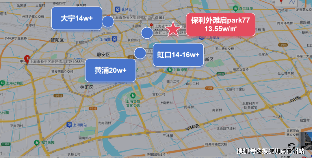 虹口四川北路-临平路14.78-16.6万/㎡,北外滩绿城地王楼板价约13.6万/㎡,这一楼板价,几乎与保利外滩启PARK77均价13.55万/㎡持平,未来该地块也将剑指20万/㎡。