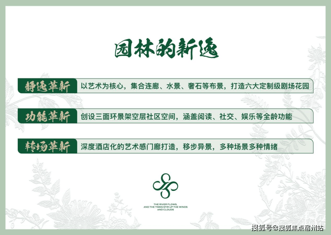 汲取国际高奢度假酒店理念,打造“六大度假花园+五重景观空间”,打造洄游的空间体会,结合泛华所的三面环景境界,将“静谧奢享”贯穿始终,让酒店式景观园林与江浦公园绿意形成衔接。